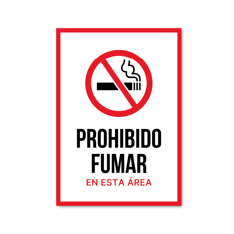 Señalética Prohibido Fumar en esta area es fabricada en material plastico(interior) y metálico (exterior).